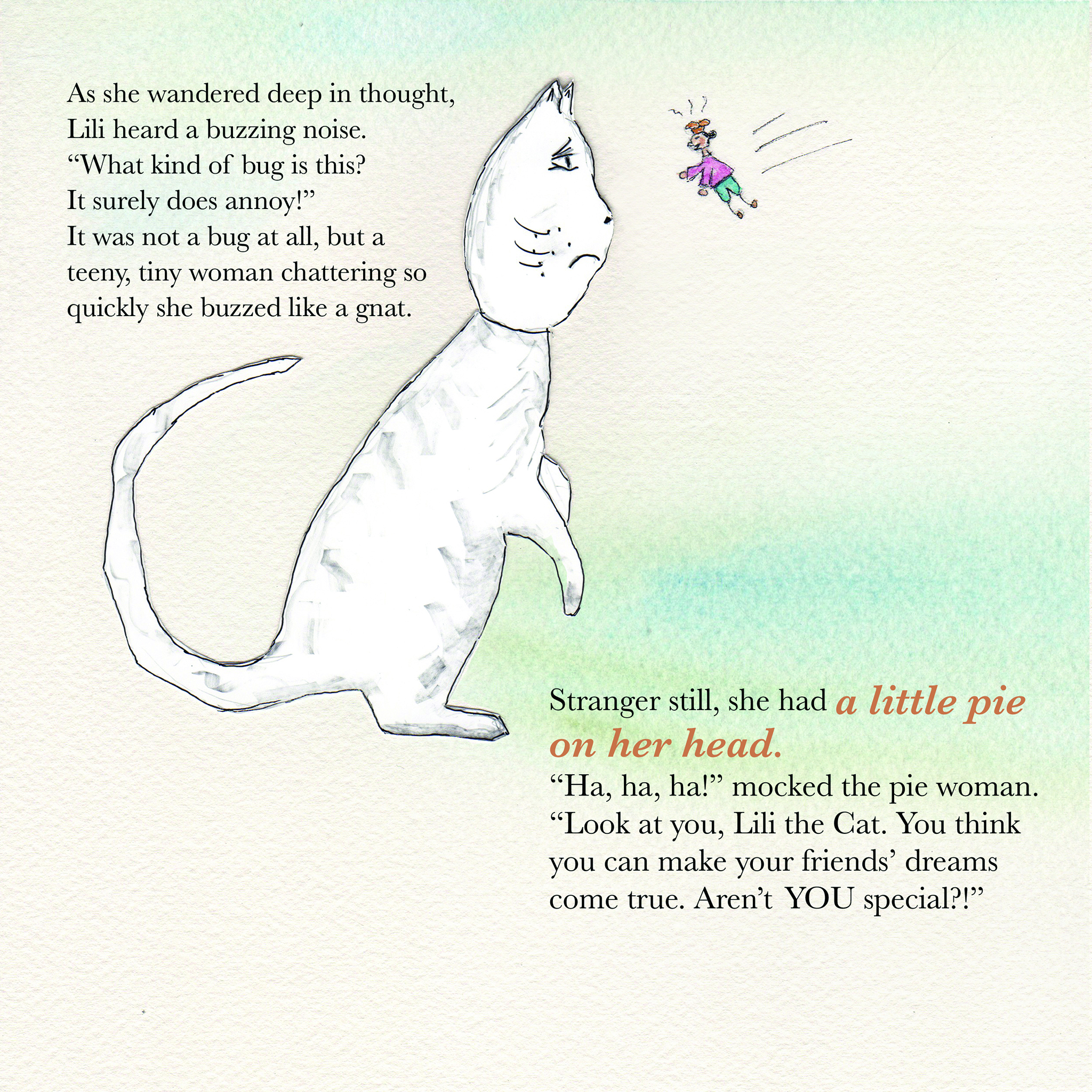 One morning, with an enthusiastic “Palukkalukka!,” Lili the Cat sets off for a walk. Along the way she makes new friends who all need help to realize their dreams: one longs to visit France, one wants a surfboard, another needs a new home. Quite by chance, she discovers a magical bank that will deliver all that and more, but only she can tell them how to get there – and Penny La Crudd, an annoying fairy with a cranky temper, will do anything to stop them.